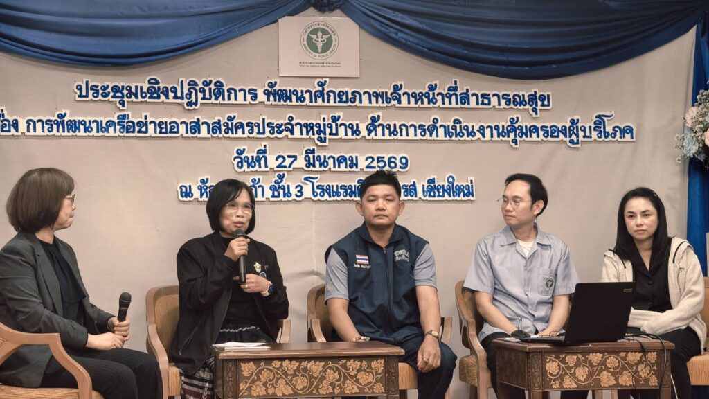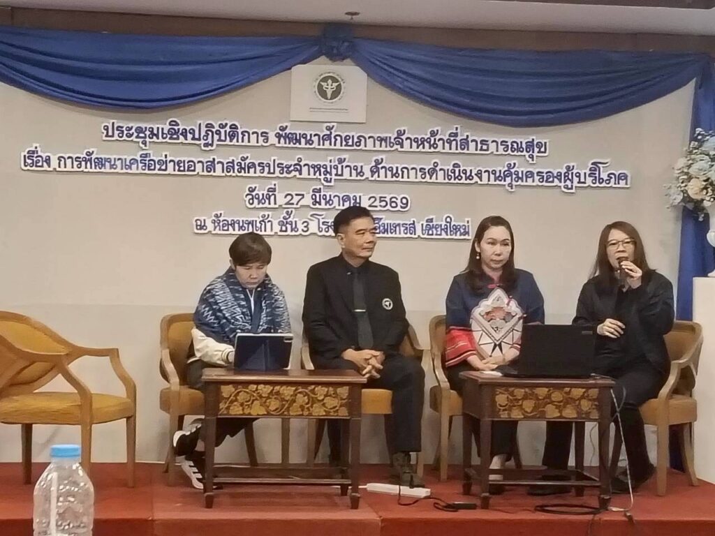 เมื่อวันที่ 27 มีนาคม 2569ณ ห้องประชุม โรงแรมดิเอ็มเพรส เชียงใหม่ สำนักงานสาธารณสุขจังหวัดเชียงใหม่ โดยกลุ่มงานคุ้มครองผู้บริโภค จัดการประชุมเชิงปฏิบัติการ “พัฒนาศักยภาพเจ้าหน้าที่สาธารณสุข และเครือข่ายอาสาสมัครสาธารณสุขประจำหมู่บ้าน (อสม.) ด้านการดำเนินงานคุ้มครองผู้บริโภค”
